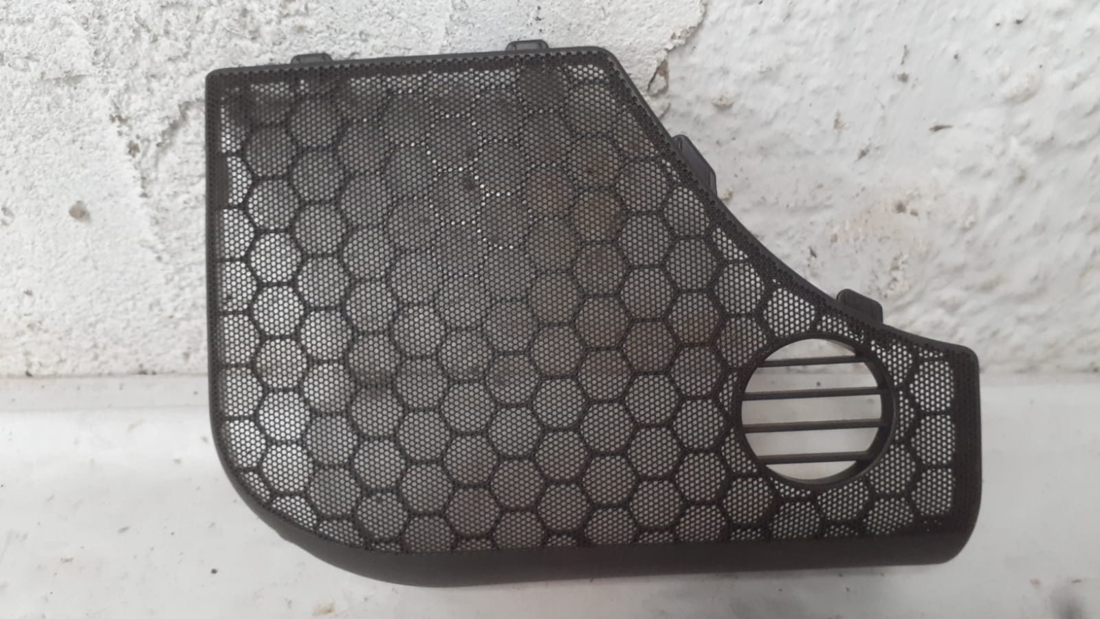Acabamento do alto-falante dianteiro direito Audi A6 2.8 24V 1994 a 1995, peça original usada, responsável por proteger o alto-falante e conferir acabamento estético ao painel da porta. Ideal para reposição em veículos com acabamento danificado, rachado ou faltando, mantendo estética, funcionalidade e proteção do sistema de áudio.