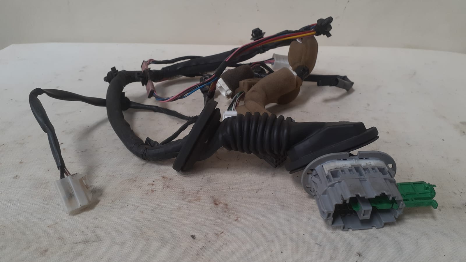 O chicote elétrico da porta dianteira esquerda é responsável por conduzir energia e sinais elétricos entre a carroceria e os componentes da porta, como vidro elétrico, trava, retrovisor e alto-falantes.